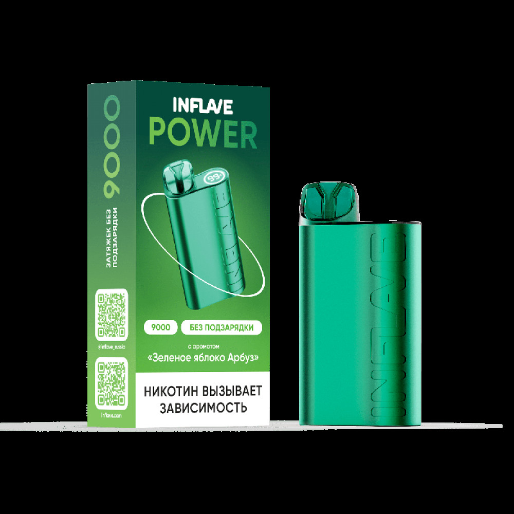 Электронная сигарета INFLAVE POWER 9000 затяжек Зеленое Яблоко Арбуз - купить в Костроме