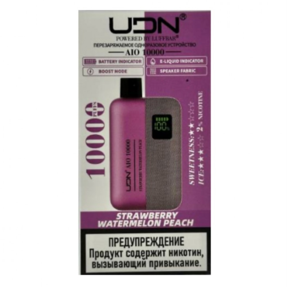 UDN видыAIO 10000 UDN вкусыКлубника Арбуз Персик UDN количество в блоке10 шт